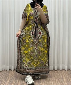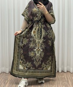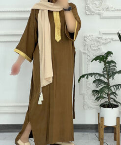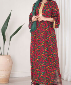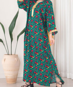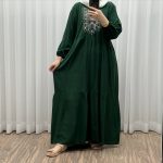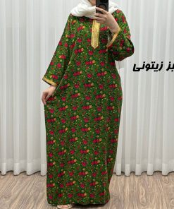 سبز زیتونی پیراهن ساحلی ترکمنستان طلاکوب گل ریز