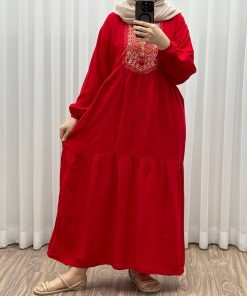 قرمز سارافون راحتی خانگی کوتاه ساده